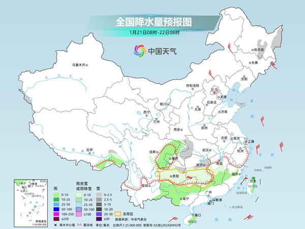 具体来看,中央气象台预计,今天,黑龙江中东部、山东半岛、贵州中东部、重庆东北部、湖北西部、湖南中南部、江西中部、广西东北部等地部分地区有小到中雪或雨夹雪。贵州中东部和西北部、湖南中南部、广西北部等地部分地区有冻雨。四川盆地、贵州西南部、云南东南部、江西南部、福建中西部、广西中西部、台湾岛等地部分地区有小到中雨。