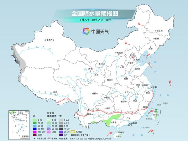 明天,新疆西南部、西藏西部等地部分地区有小到中雪,其中,新疆西南部局地有大雪。云南东南部、广西中西部、台湾岛等地部分地区有小到中雨。