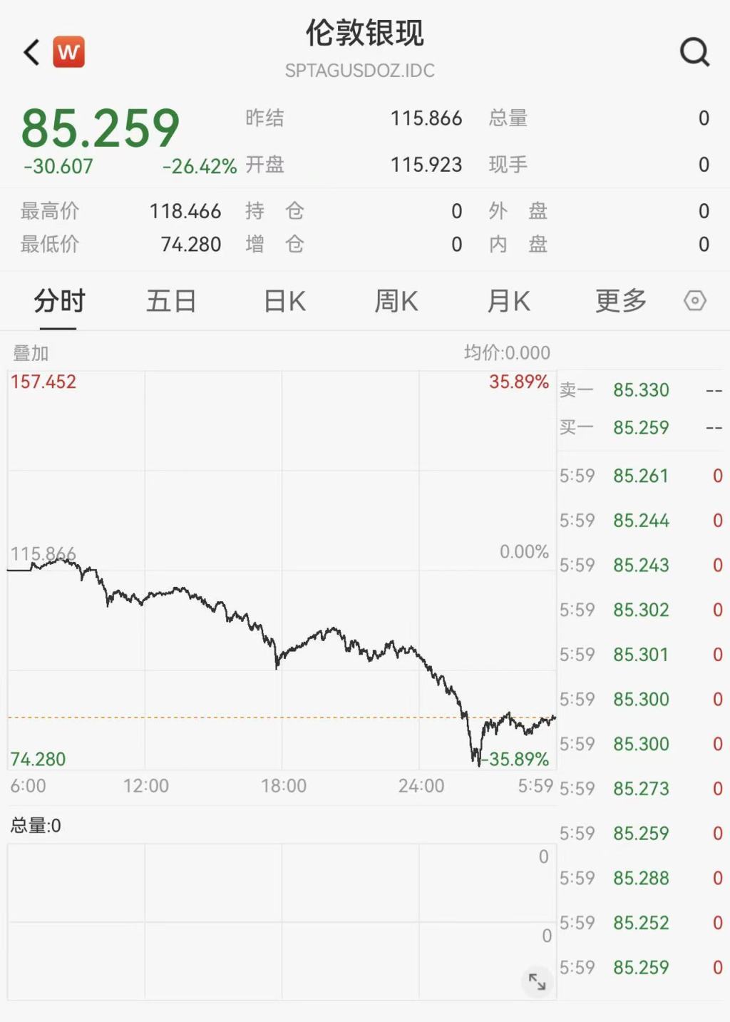 现货白银周五收跌26.42%,创1983年2月28日以来最大单日跌幅,报85.259美元/盎司,脱离1月29日所创历史最高位121.6540美元/盎司,1月份累涨19.12%。COMEX白银期货周五收盘暴跌27.18%,报83.300美元/盎司,1月份累涨20.10%。
