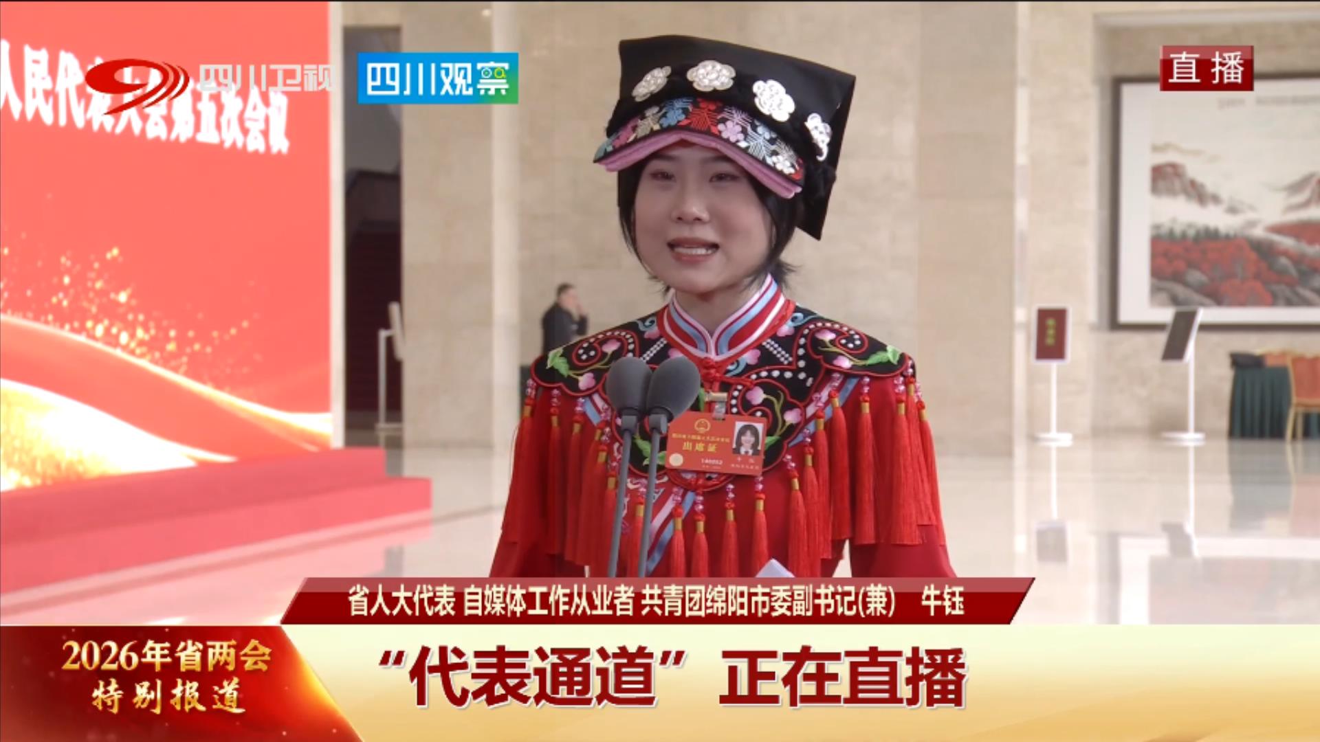 2月3日上午,四川省第十四届人民代表大会第五次会议首场“代表通道”开启,来自绵阳市北川羌族自治县的人大代表牛钰亮相“通道”,自信地向媒体记者分享了自己的履职故事。