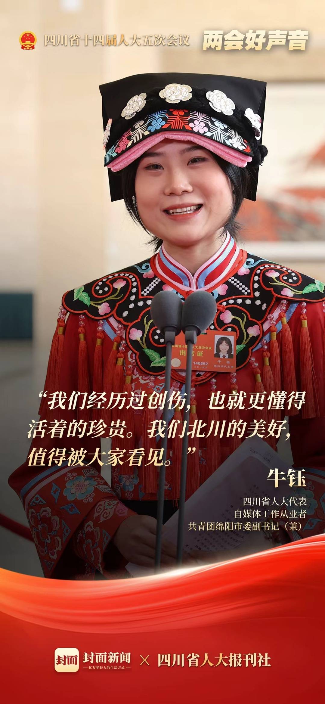 “一天收到上千条私信,几百条都与无障碍设施有关。”作为拥有全网500万粉丝的自媒体博主,省人大代表、共青团绵阳市委副书记(兼)“春游哥哥”牛钰深知残障群体面临的“隐形门槛”。在地震中失去右腿的她,用一条“小钢腿”走过沙漠、时装周和马拉松,更走上了代表通道。
