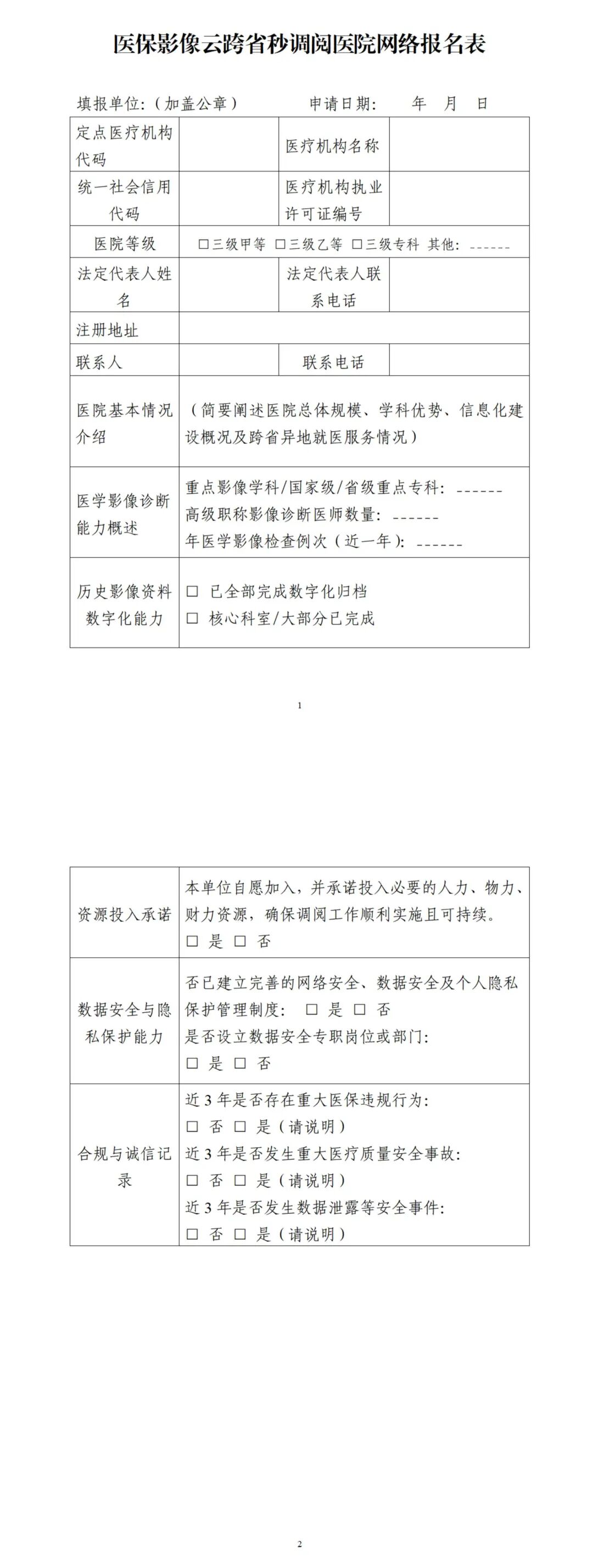 国家医疗保障局关于组建医保影像云跨省秒调阅医院网络的通知