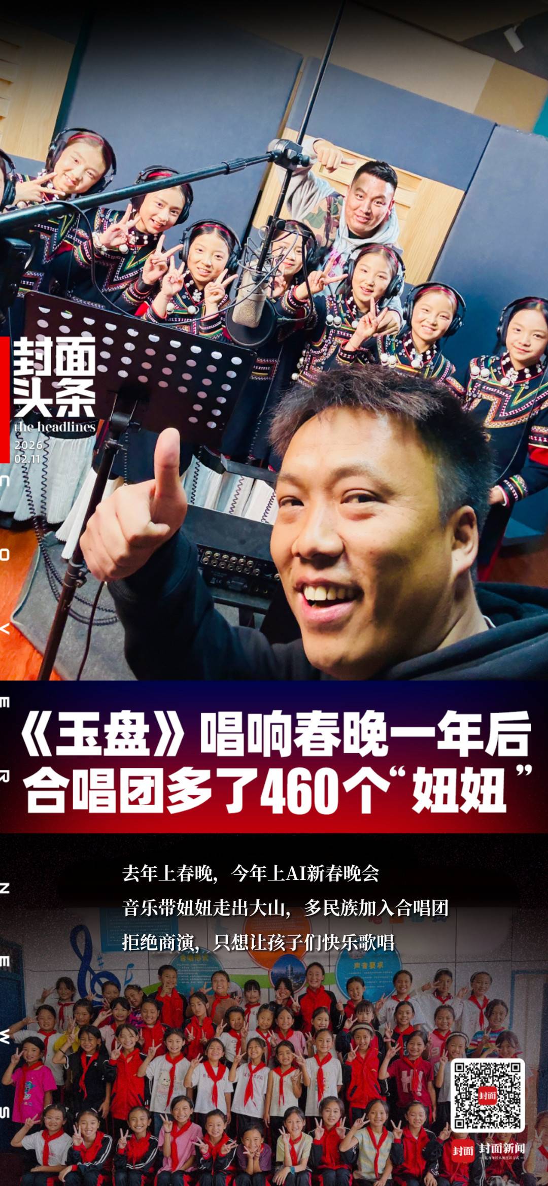2025年2月9日,总台春晚的一曲《玉盘》让四川大凉山的妞妞合唱团走进全国观众视野。在登上春晚一年后,2026年2月11日,记者联系了吉布小龙,寒假期间他正陪伴家人,聚光灯的余温已经融进日常生活中。通过这次对话,我们发现他和妞妞们,正让大山里的音乐种子生长出崭新的模样。