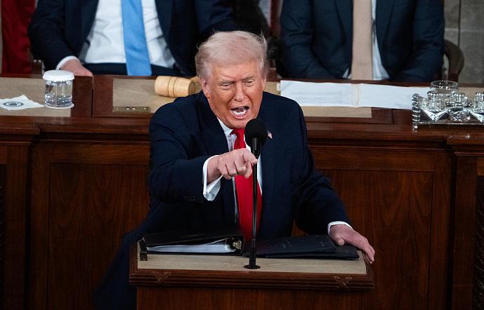 △24日,美国总统特朗普在国会发表其最新一期国情咨文演讲