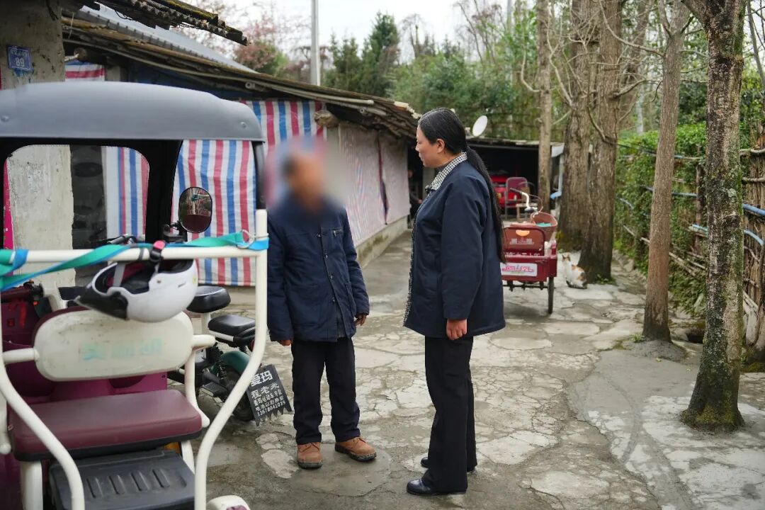 第一站,陶勋花径直来到独居老人杨仁河的家中。轻轻推开虚掩的门,陶勋花走到老人身边,俯下身子,用乡音轻声询问起这几日的身体状况和饮食起居。杨大爷身患重病,无子女,日常除了亲属主动照料外,村里也将其列为重点关爱对象,通过定期上门探访、送医送药等方式,为他筑起一道兜底保障网。陶勋花耐心地叮嘱他按时服药、注意保暖,仔细倾听老人的难处,把每一个细节都记在心里。