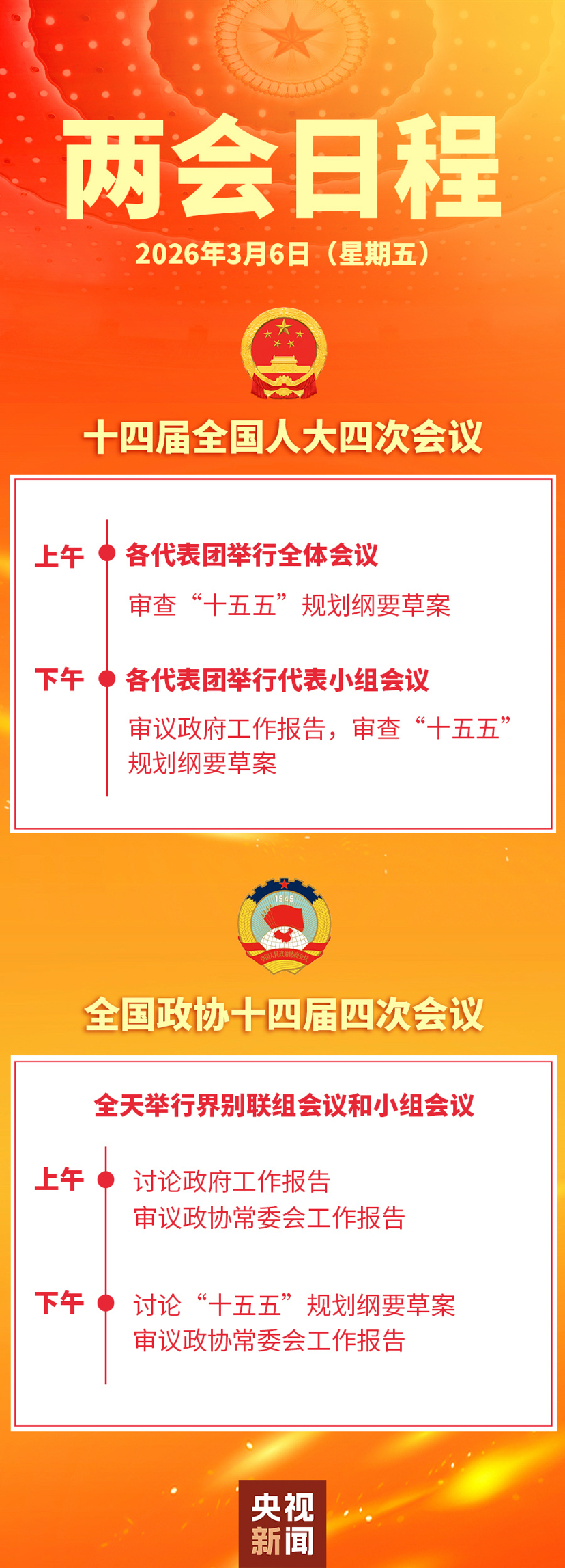 两会日程预告丨3月6日:审议和讨论政府工作报告 审查和讨论“十五五”规划纲要草案