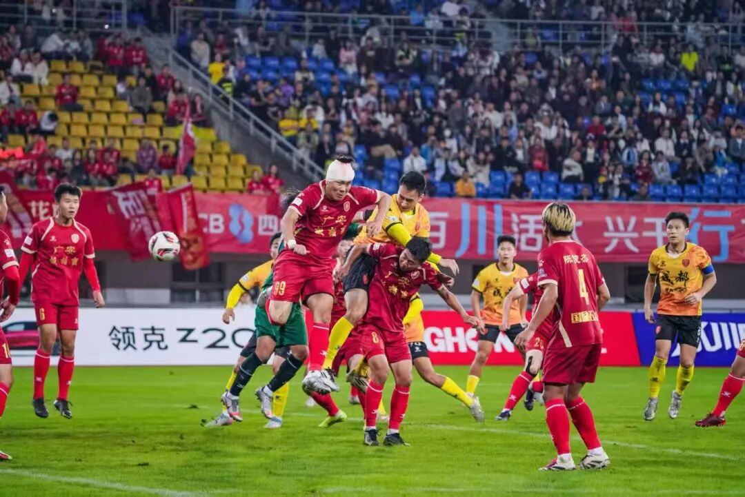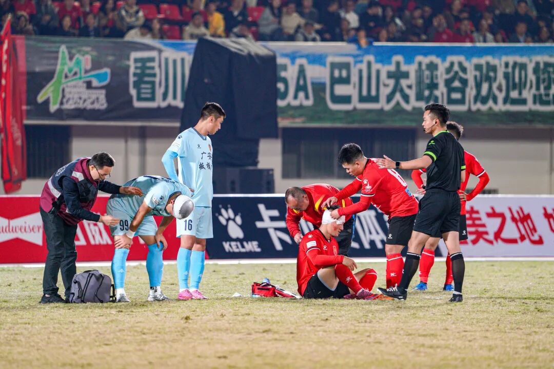 在达州队主场对战广安队的比赛中,达州队21号任洪川眉骨受伤,血洒赛场,但他“带伤作战”,依旧奋力拼搏并进球得分。他用“轻伤不下火线”的韧劲诠释“川汉子”精神。