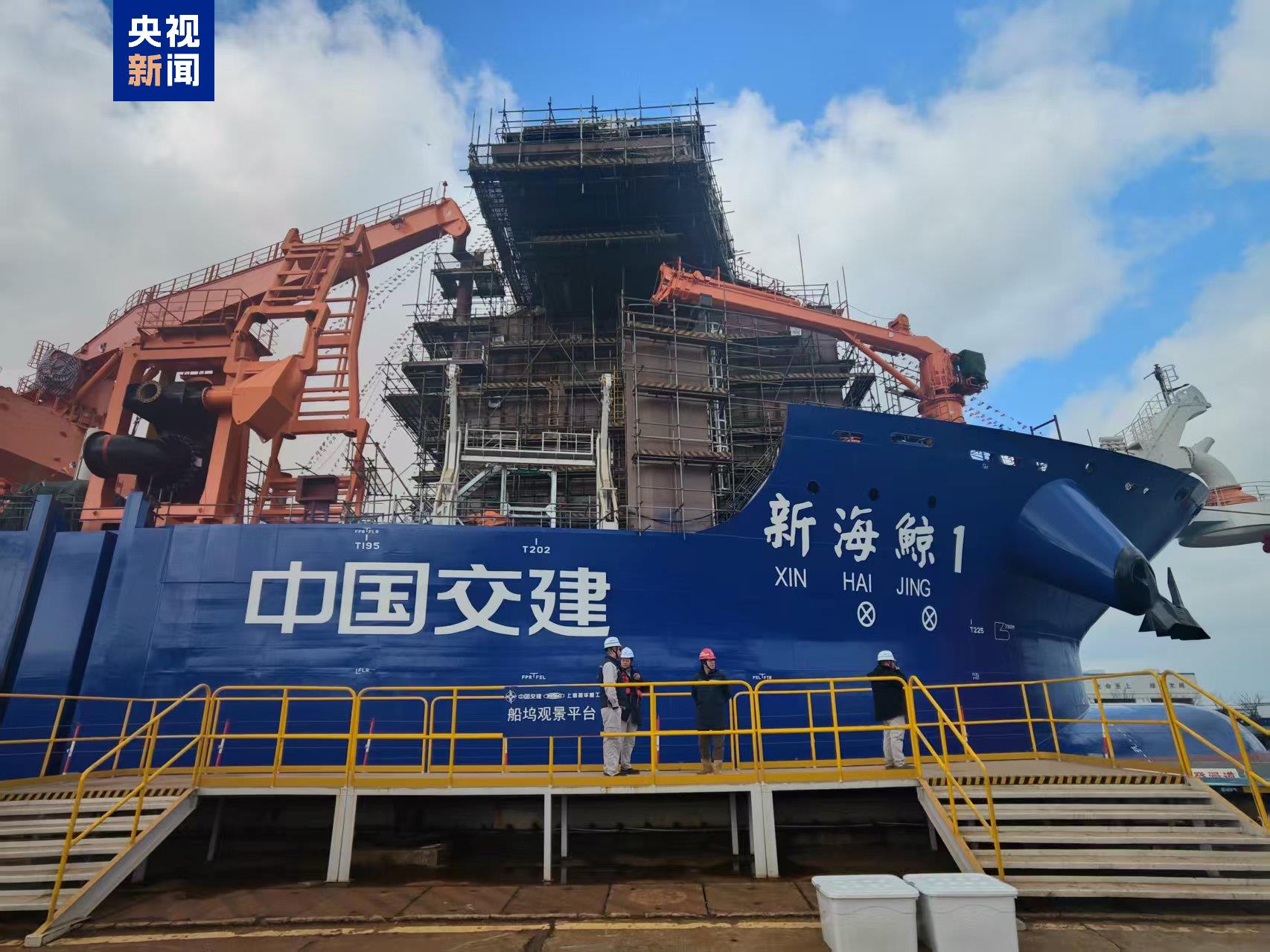 我国首艘分布式泵舱超大型自航耙吸挖泥船下水