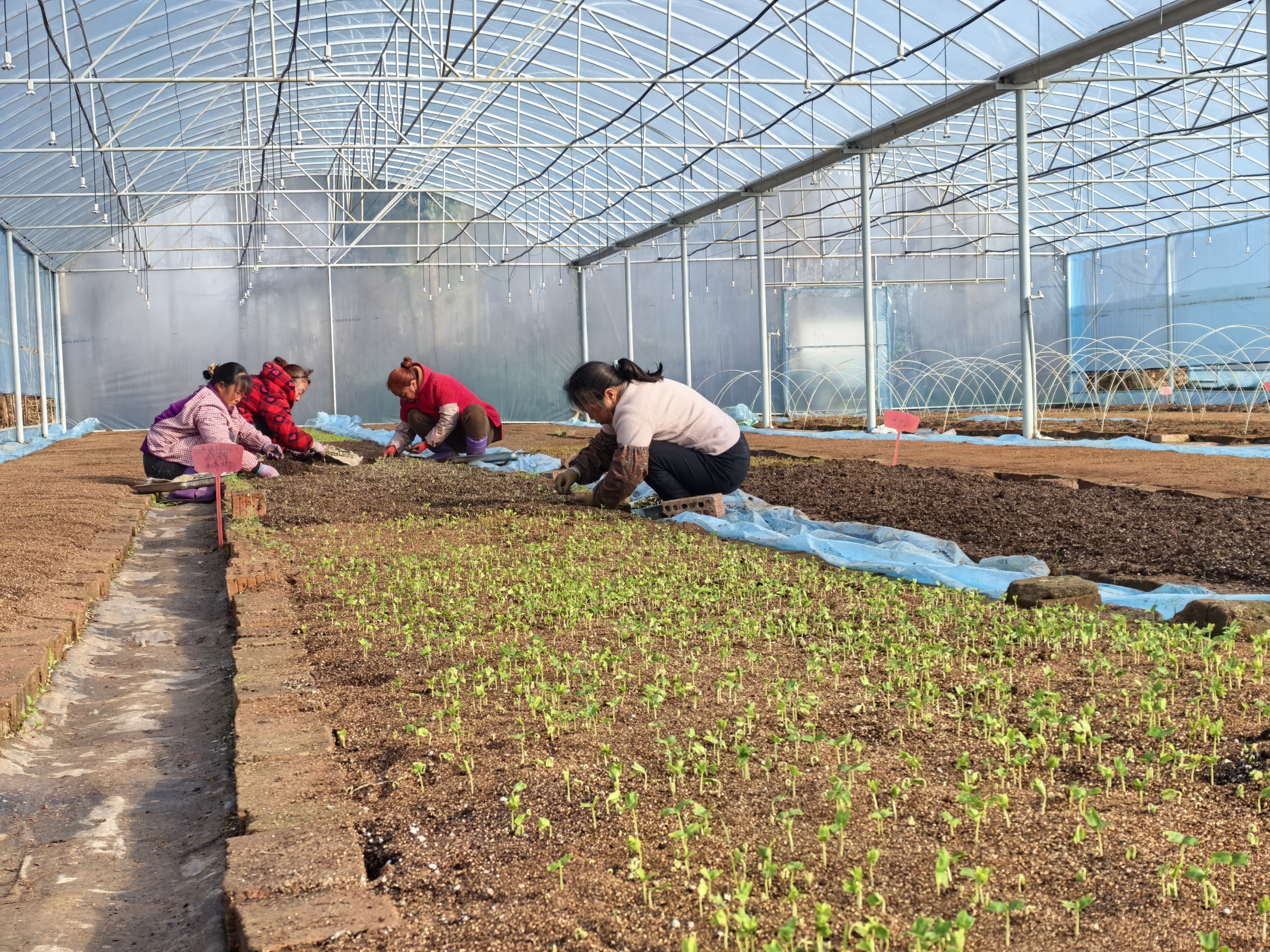 春日到来,基地内十分繁忙。工人们围坐于轻质松软的育苗基地旁,小心翼翼地为一株株朴树幼苗“搬家”。“这批芽苗已达到移栽标准,必须抢抓时间。”技术负责人王家辉的话语中带着紧迫感。从自主研发、透气性与保温性俱佳的“轻基质+蛭石”配方,到针对不同树种优化的芽苗、穴苗、杯苗培育流程,科技创新贯穿始终。