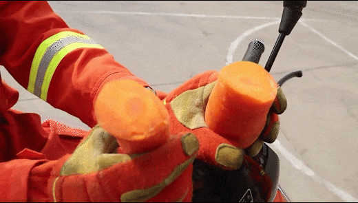 接着,消防员又测试了稍硬的胡萝卜,结果同样被轻松割开。