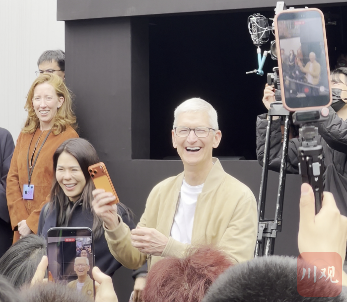 苹果公司CEO库克现身成都太古里,开心比“耶”和大家互动