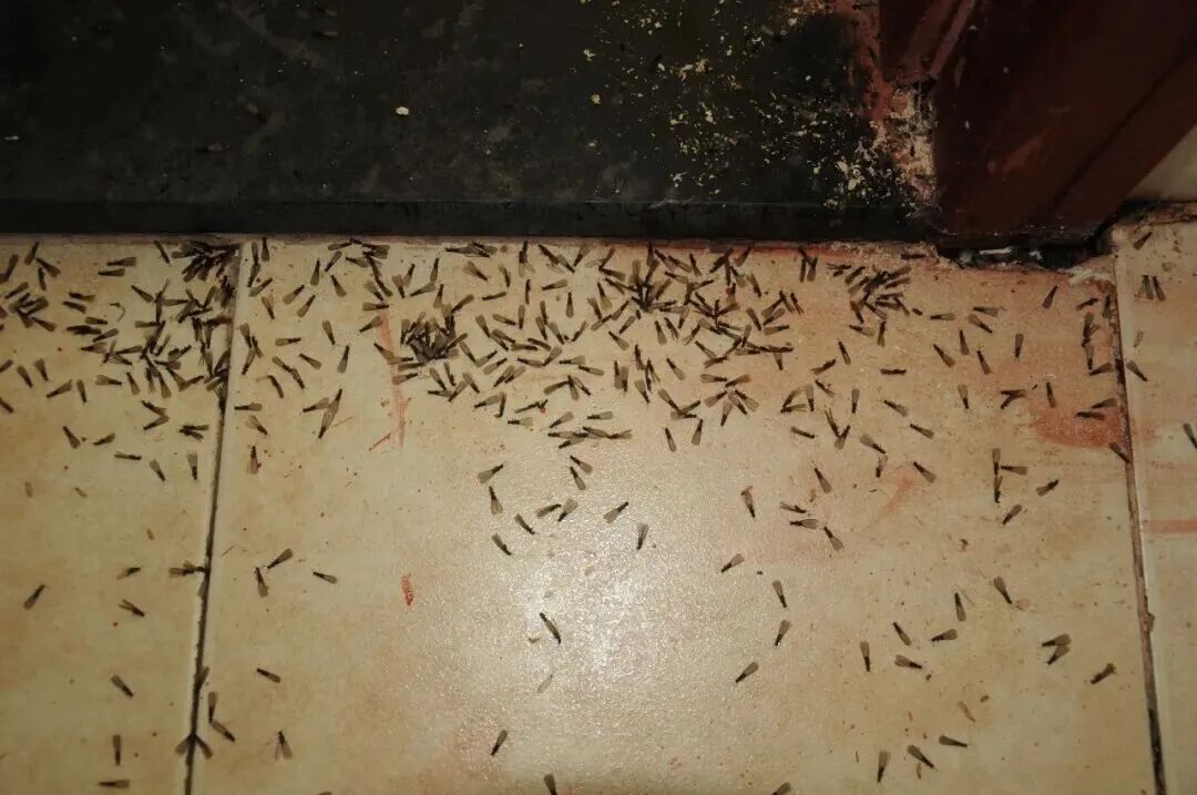 墙角、窗边突然出现成群带翅飞蚁,或发现脱落的翅膀。