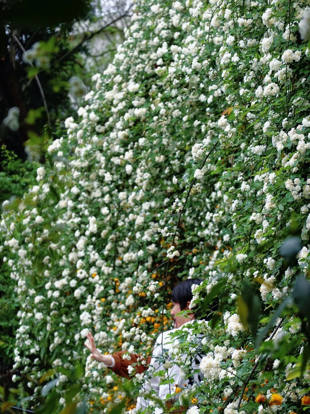 人民公园的七里香,花朵层层叠叠,垂落下来如同瀑布一般,在红砖蓝瓦的映衬下显得更美;罨画池博物馆的七里香,白色的花朵成簇成群,大方而热烈地渲染着春色。