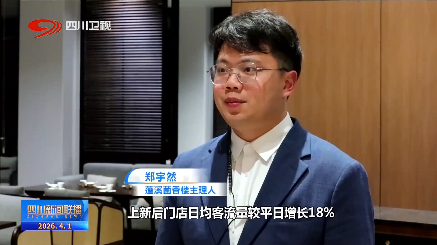 蓬溪菌香楼主理人 郑宇然:上新后门店日均客流量较平日增长18%,其中鲍喜羊肚菌菜品成为“爆款”,单日销量占比超23%,不少食客都是冲着这道时令春菜专程前来。