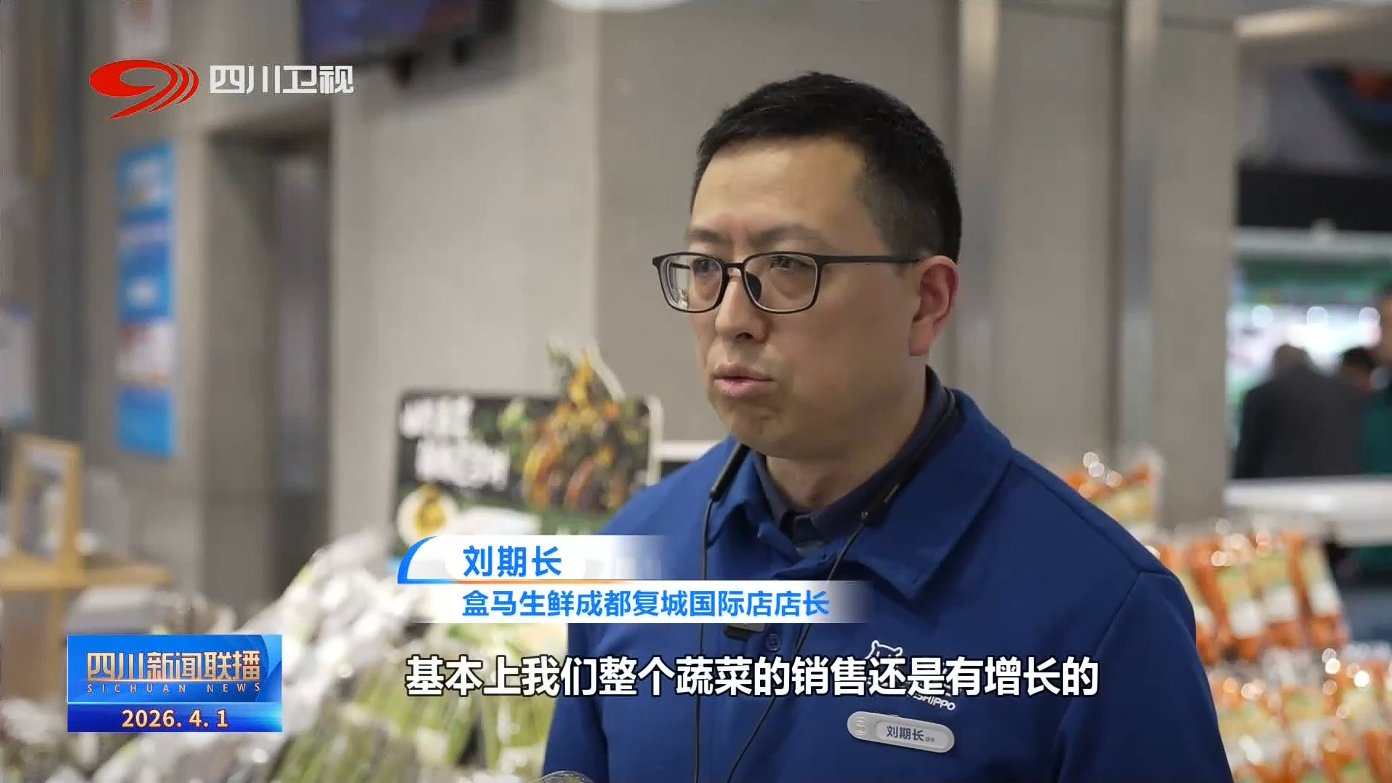 盒马生鲜成都复城国际店店长 刘期长:大家吃个新鲜,所以在这方面基本上我们整个蔬菜的销售还是有增长的。基本上周边的顾客就是每一单都会有蔬菜在里面,而且30%的顾客都会有“春菜”的需求量。