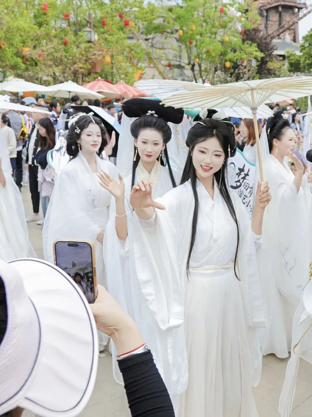 更有百位身着素雅古风造型的“白娘子”空降景区各处,穿梭街巷与游客近距离互动打卡、趣味游园,沉浸式解锁仙侠国风浪漫奇遇。