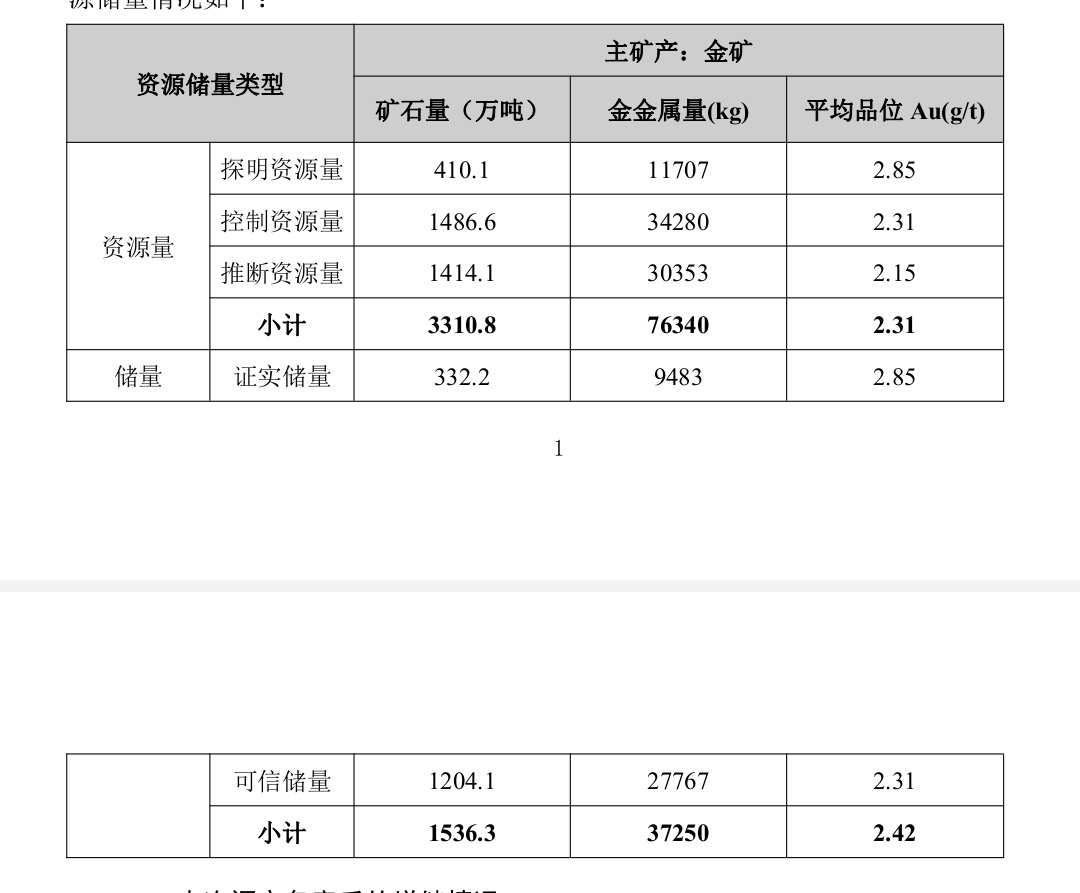 评审备案结果显示,相较于前次(2016年9月)编制的储量评审备案报告,本次评审通过的保有资源量:矿石量增加1979.6万吨,金金属量增加31478千克。