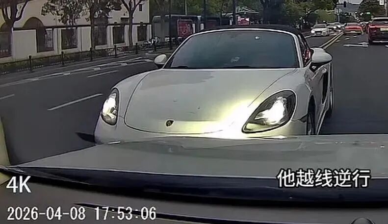视频中,一保时捷车主在行驶中违规使用远光灯,随后越过马路中心黄线逆向行驶,堵了另一辆车。