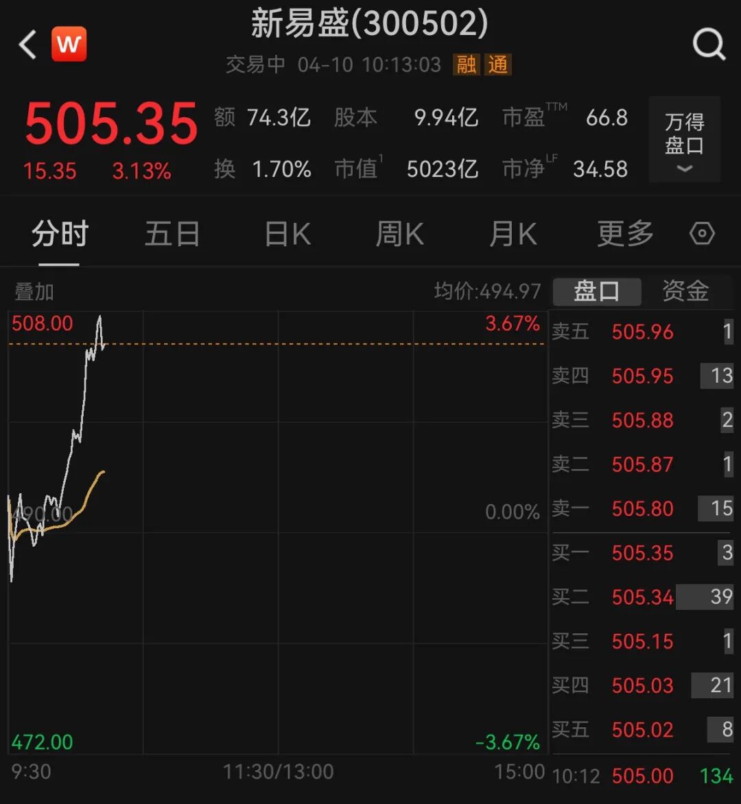 成都上市公司再添新纪录。4月10日,CPO概念龙头新易盛盘中涨逾3%,股价最高触及508元/股,续创历史新高,总市值超5000亿元。该股近期持续走高,最近一年累计涨幅超900%。