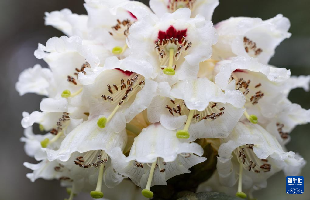 这是4月8日在华西亚高山植物园使用微距镜头拍摄的凸尖杜鹃花蕊。新华社记者 江宏景 摄