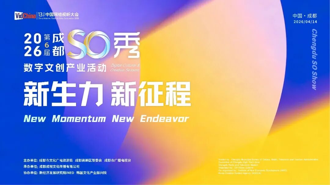 第十三届中国网络视听大会将于4月14日至16日在成都举行。近年来,生成式人工智能技术加速迭代,正以颠覆性力量重塑全球内容创作与文娱视听产业,推动其迈向智能化生产、规模化应用、价值化变现的新阶段,成为文化新质生产力的核心引擎。作为大会孵化的成都本土自主IP,“成都So秀”已成功举办五届。今年,成都So秀数字文创产业活动以“新生力 新征程”为主题,聚焦人工智能时代的数字文创新生态,将于4月14日下午在世纪城国际会议中心3楼蜀汉厅举行。