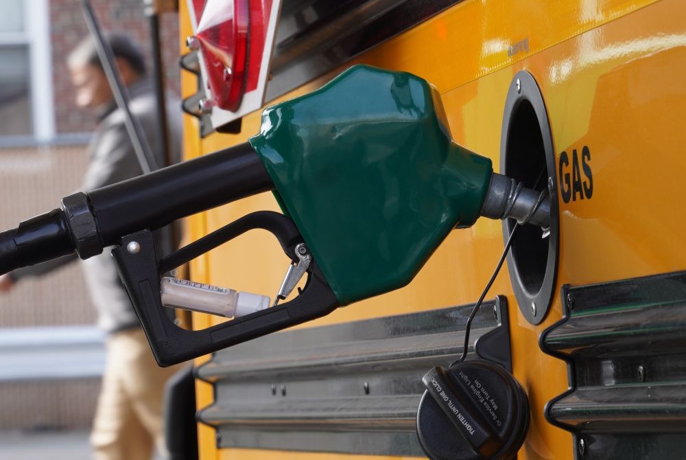 3月31日,一辆校车在美国纽约的加油站加油。图据新华社