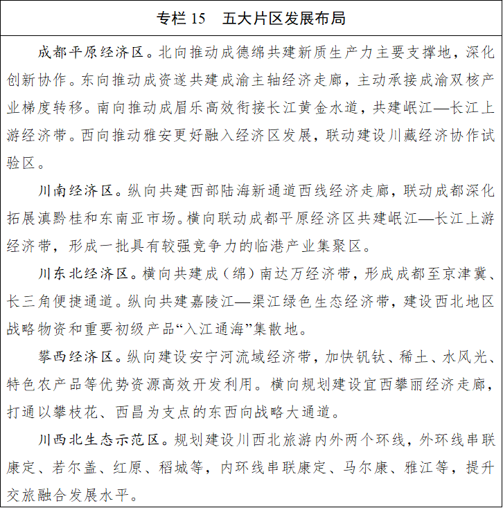 四川省国民经济和社会发展第十五个五年规划纲要