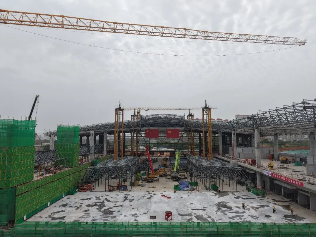 目前,项目主体结构施工已全部完成,金属屋面侧式站房施工完成,幕墙及装饰装修工程正有序推进。下一步,客站建设指挥部将紧盯节点、严把质量,全力推进后续工程建设,确保项目按期高质量开通。