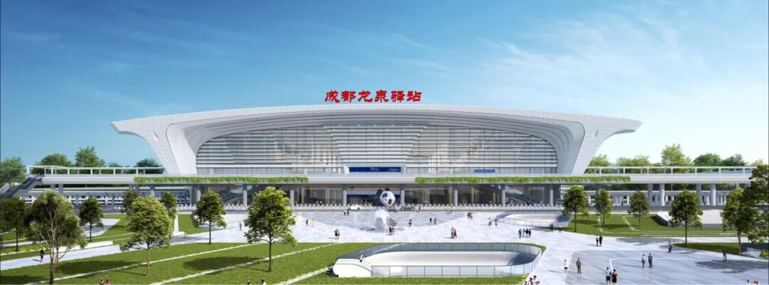 成都龙泉驿站位于四川省成都市龙泉驿区大面街道,站房建筑面积2.4万平方米,站场规模4台9线,设计最高聚集人数2300人。车站以“站城融合、城轨融合、景城融合”为设计理念,以“蜀都林盘 交织锦绣”为建筑立意,整体造型简洁大气,展现新时代客运枢纽风貌。