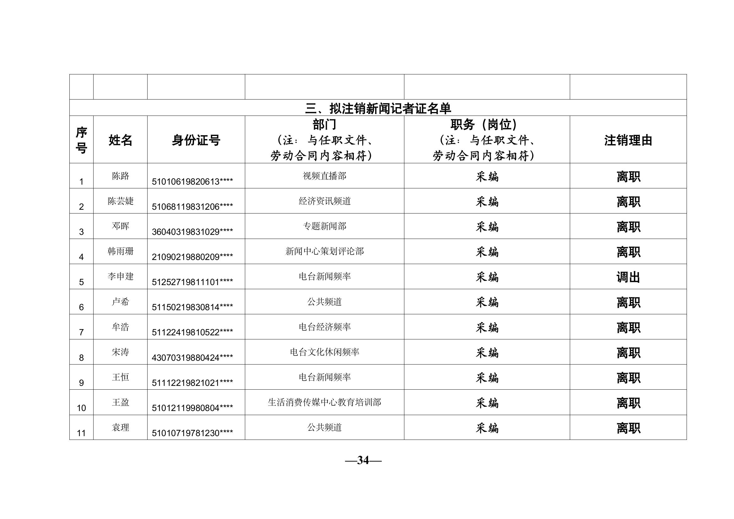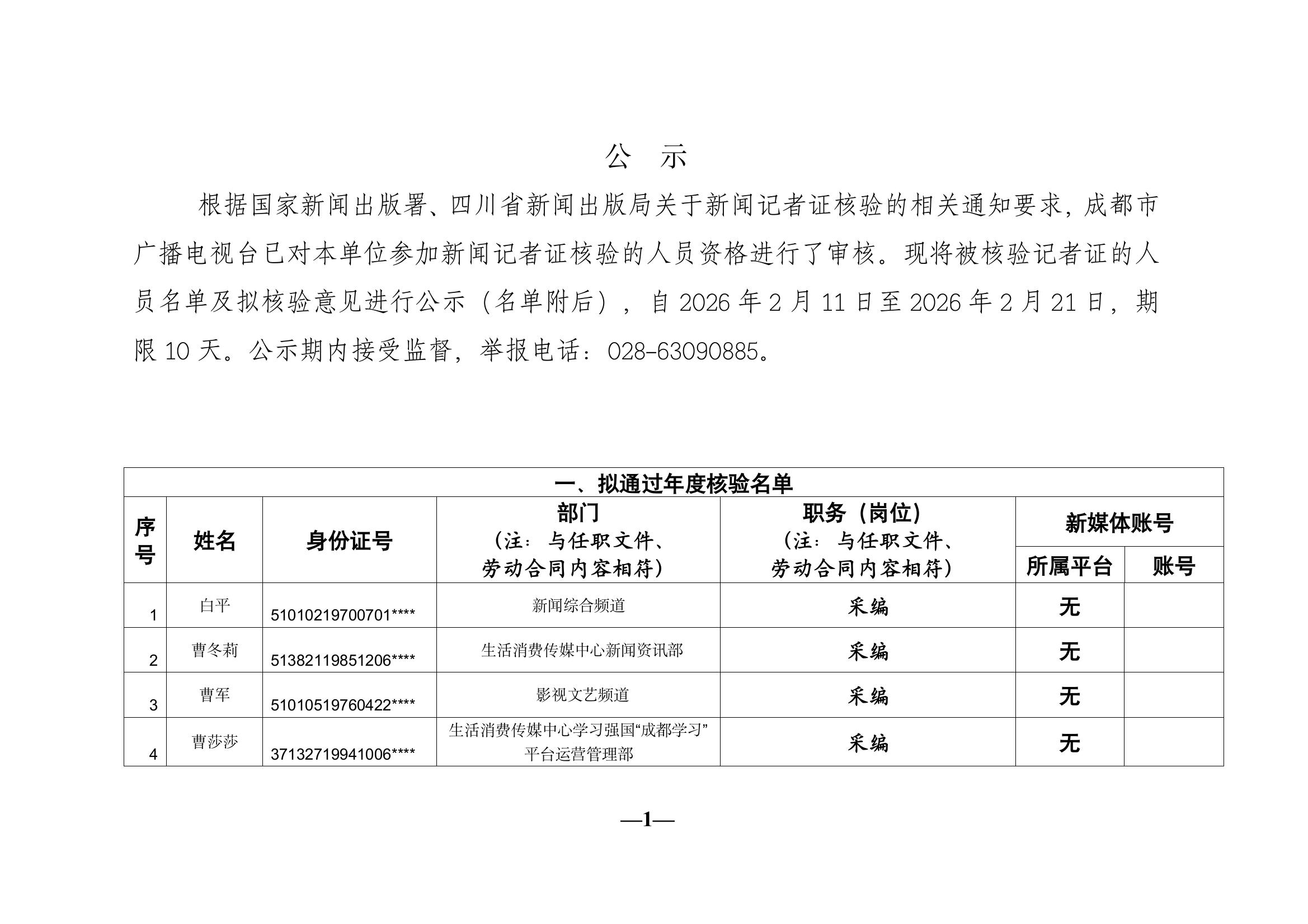 成都市广播电视台关于2025年度新闻记者证核验工作情况的公示