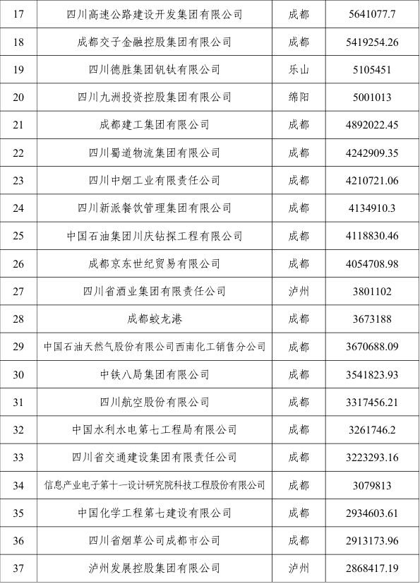当天会上,还同步发布了四川制造业企业100强、四川建筑业企业100强、四川服务业企业100强、四川数字经济企业100强四个榜单。