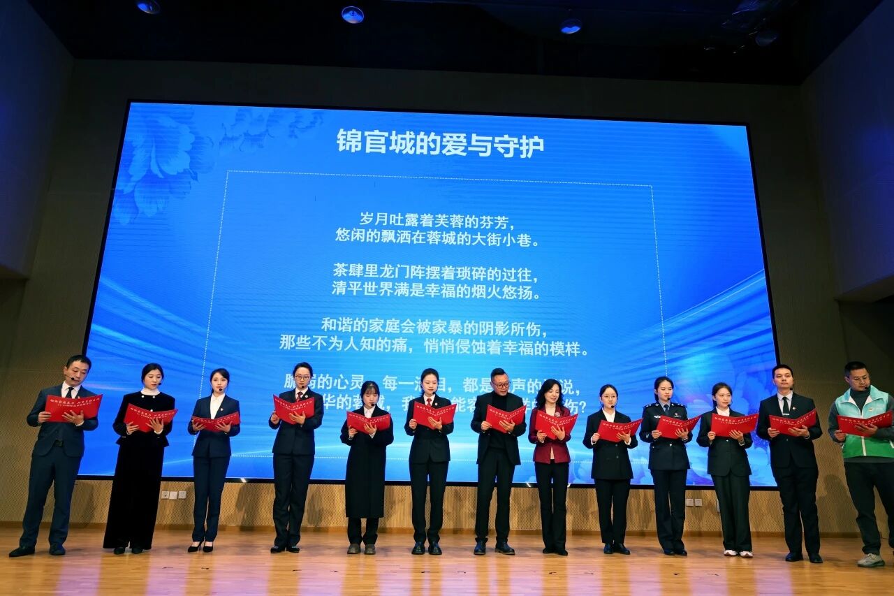 成都市反家暴联盟的成员单位代表演绎了反家庭暴力主题诗歌《锦官城的爱与守护》。成都市妇联、武侯区妇联、温江区妇联与重庆市沙坪坝区妇联、巴南区妇联现场签订《成渝双城妇女儿童维权工作区域合作框架协议》,建立信息共享、妇儿维权、培训交流三项机制。