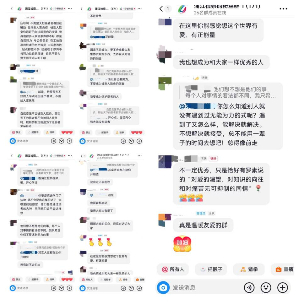 为提供更安心的交流空间,鲍昱辰和团队建立了粉丝群。面对群内的法律疑问,她们认真回应每一条留言,因为“一个疑问,可能关乎他人人生的重要决策”。这里没有居高临下的说教,只有平等真诚的交流。粉丝们在此分享看视频追回欠款的喜悦、遭遇网暴后果断追责的理性、面对职场骚扰不再隐忍地成长……许多人坦言:“这里是我们的精神家园。”团队始终用通俗易懂的表达,帮助妇女群众懂法、用法、守法,真正筑牢妇女权益保护的“法治防线”。