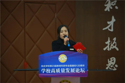12月22日下午,成都市龙泉驿区柏合学校全体教师共赴建校120周年学校高质量发展论坛的盛世之约,共同聚焦“学校教育高质量发展”的时代主题,探讨和思考当前学校教育改革、发展的紧迫要求,探寻教育高质量发展的深层奥秘。本次论坛由柏合学校学生素质发展中心团队辅导处吉玥琳主任主持。