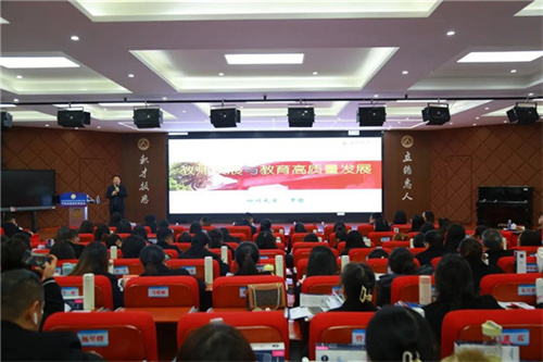 四川大学公共管理学院人力资本开发研究所所长罗哲教授以《教师发展与教育高质量发展》为题作主旨报告。