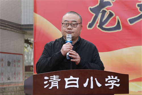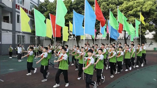 在管乐团庄严的国歌声中,国旗护卫队将国旗缓缓升起。随着黄校长的致辞、裁判员和运动员的宣誓,陈书记宣布清白小学第四十届春季田径运动会正式开始!