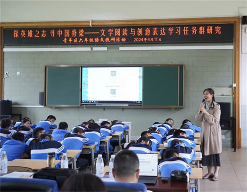 4月中旬,在成都市青羊区教育科学研究院小学语文教研员刘文虎老师的指导下,成都市清波小学六年级语文组聚焦“文学阅读与创意表达”任务群,以“探英雄之志 寻中国脊梁”为主题,精心设置“主题汇报、课例呈现、说课议课”三个教研环节,为全区六年级语文教师呈现了学校“在语文教学中渗透思想政治教育”的教学研究样态,全区六年级语文教师近200人参加本次教研活动。