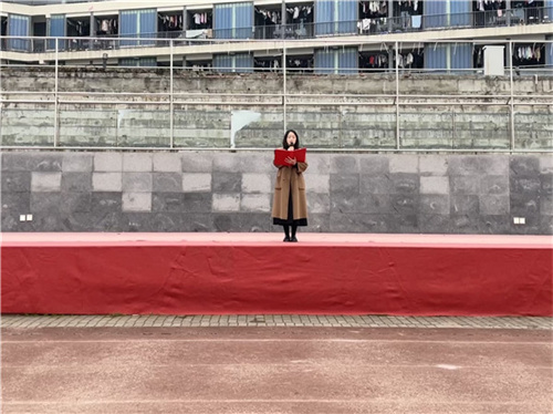 校团委学生会的代表隆亦洋同学发表了以《法治之光下的青春担当》为主题的倡议。