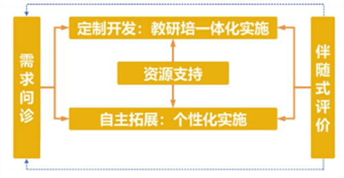 其次,学校采用“双路径”形式进行教师培训,定制开发青年教师专业发展必修课程与选修课程,必修课程的开展与教学教研、科研、师培有机整合,实现教研培一体化实施。