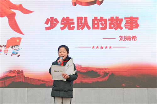 刘婧希同学化身“红色小使者”,带领大家探寻红领巾的起源。那一段段鲜活的历史,让同学们深刻体会到:红领巾是无数革命先烈用鲜血染红的荣耀象征,承载着厚重的使命和殷切的期望。