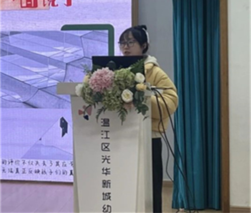 温江区光华新城幼儿园课程改革与发展中心主任李巧分享了“小小调音师的蜕变”幼儿园课程评价变革实践案例。通过模拟图书馆阅读、小小合奏家活动等具体实践,实现了由幼儿参与带来评价主体的更迭、评价焦点的迁移、评价方式的进化课程评价三点转向。