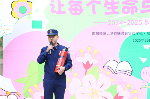 活动现场,学校特邀成华区双林路消防救援站的消防员们为全校师生带来了一场生动的消防教育宣传,增强了大家的消防安全意识。消防员手持灭火器,现场演示灭火技巧,学生与家长上台亲身体验,现场气氛热烈。