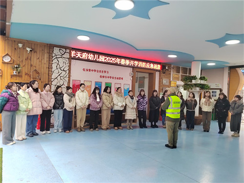 2025年2月19日上午,成都市青羊区天府幼儿园为提升幼儿园消防疏散演练的组织和管理水平,开展了2025年春季开学消防应急疏散演练,切实提高了消防应急疏散能力,强化了师幼安全意识,培养了幼儿终身受益的消防应急行为习惯。
