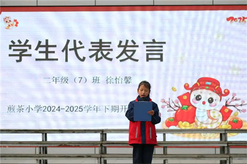 随后,煎茶小学专职副书记马庆琳(东区)、副校长付静(西区)发表了热情洋溢的开学致辞。他们回顾了过去一年的成就与收获,展望了新学期的美好愿景,并鼓励全校师生在新的学期里继续努力,携手共进,共同描绘学校更加辉煌的未来。