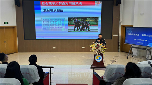 2月21日,全体教师齐聚一堂,共同参与《防止学生欺凌 为成长护航》教师培训会。张杨副所长凭借丰富的执法经验与专业的法律知识,围绕学生欺凌的定义、表现形式、成因、危害及应对措施等方面展开深入讲解。