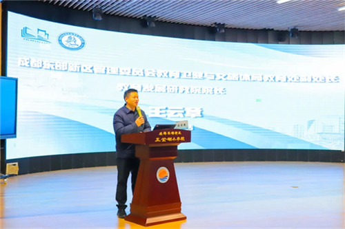 随后,成都体育学院体育学与体育理论教研室党支部书记余万斌代表成都东部新区体育校长(启志导师)发言。余书记提到,新的一年将进一步深化一校一案的体教融合工作方案,精研特色课程,深挖特色体育项目。