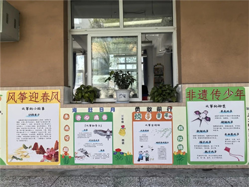学校各班以风筝元素入手,分别以风筝的由来、风筝设计稿、风筝书法作品展、风筝绘画和风筝小报等形式,用当代学子的方式讲好风筝的故事,传承传统的非遗文化,并以风筝展翅为契机,涵养少年一飞冲天的志气。