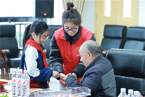 三、四年级党、团员教师与少先队员代表走进龙泉驿区综合社会福利中心,与老人们共同进行户外活动并制作艾草锤。