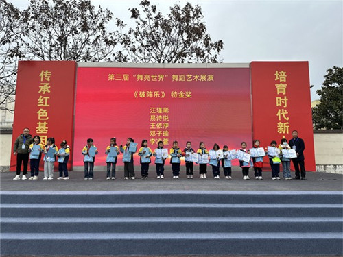 学校秦书记、乐校长为参加四川省第三届“舞亮世界”舞蹈艺术展演并获得特金奖同学颁发荣誉证书,鼓励更多的同学培养自己的兴趣爱好。