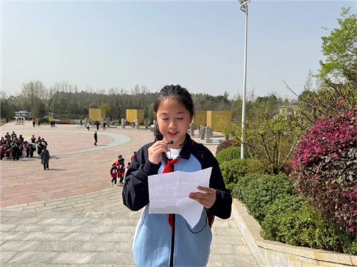 参观结束后,全体少先队员们再次来到烈士纪念碑前集合。余璐瑶带领大家唱响了少先队队歌,激昂的歌声在陵园上空回荡,唱出了同学们作为新时代少先队员的坚定信念和豪迈情怀。